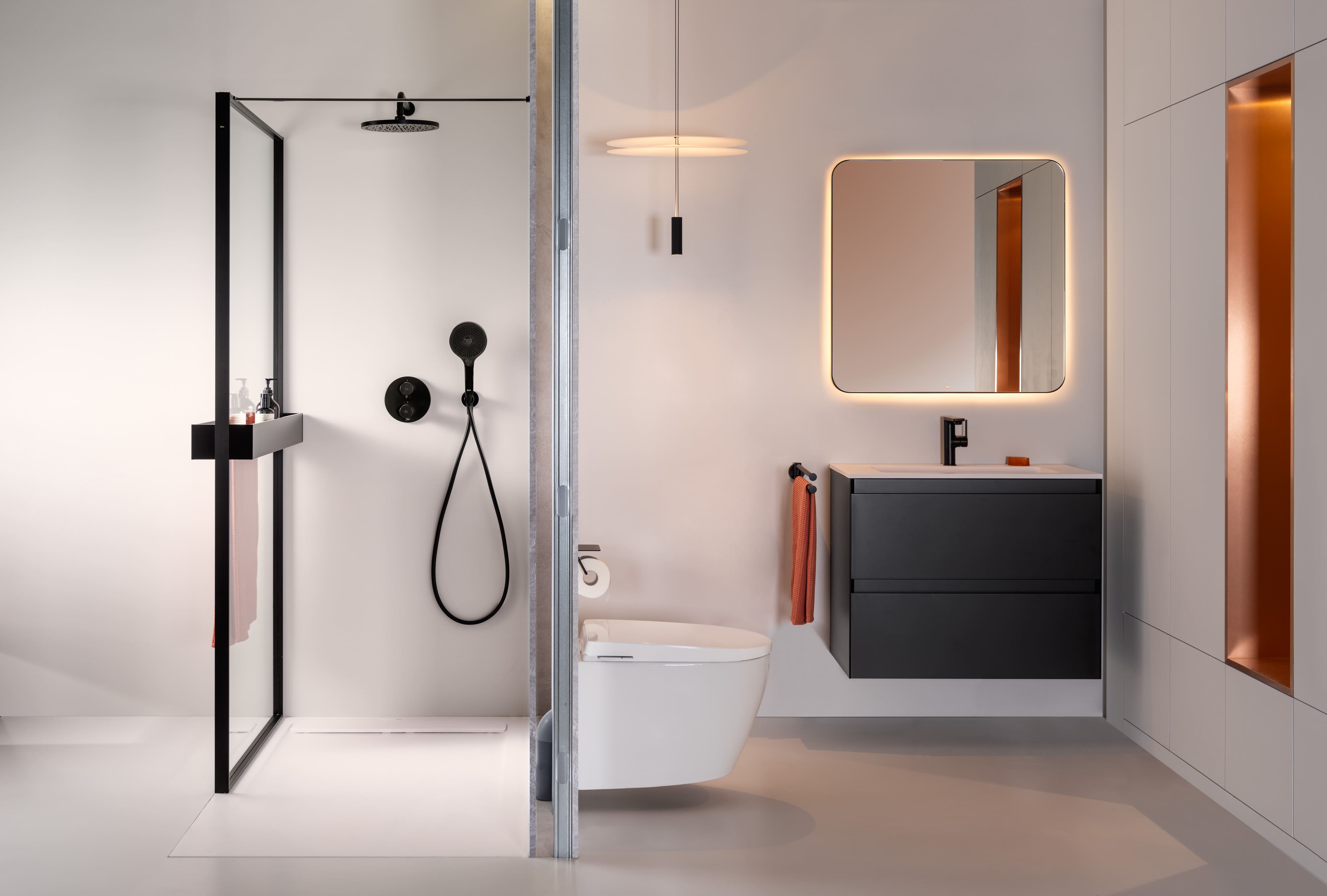 Повече контрол върху водата: всички системи за промиване са разположени извън стената и интегрирани в самата тоалетна, без използване на уплътнения, което осигурява допълнителна защита срещу течове и по-лесна поддръжка.