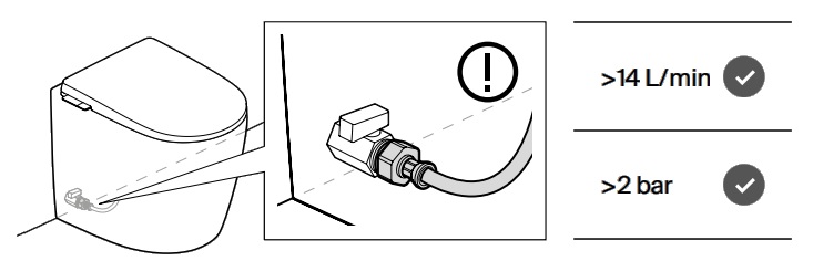 Avant‑E (електрическа версия): Ако водоснабдяването в дома не осигурява необходимото налягане и дебит, Avant‑E разполага с електрическо захранване, което гарантира плавна и надеждна работа дори при липса на специфичните водни условия. При инсталиране на Avant е важно да се проверят ключовите параметри, които влияят върху работата на санитарното оборудване, водно налягане и дебит, тъй като тези стойности могат да се различават според местоположението и типа жилище. Налягането и дебитът на точката на използване в банята често се различават от общите входни стойности поради фактори като разстояние от водоизточника, едновременно използване на други уреди или особености в инсталационния проект. Препоръчва се консултация с професионалист, за да се гарантира правилна настройка и оптимална работа на системата.