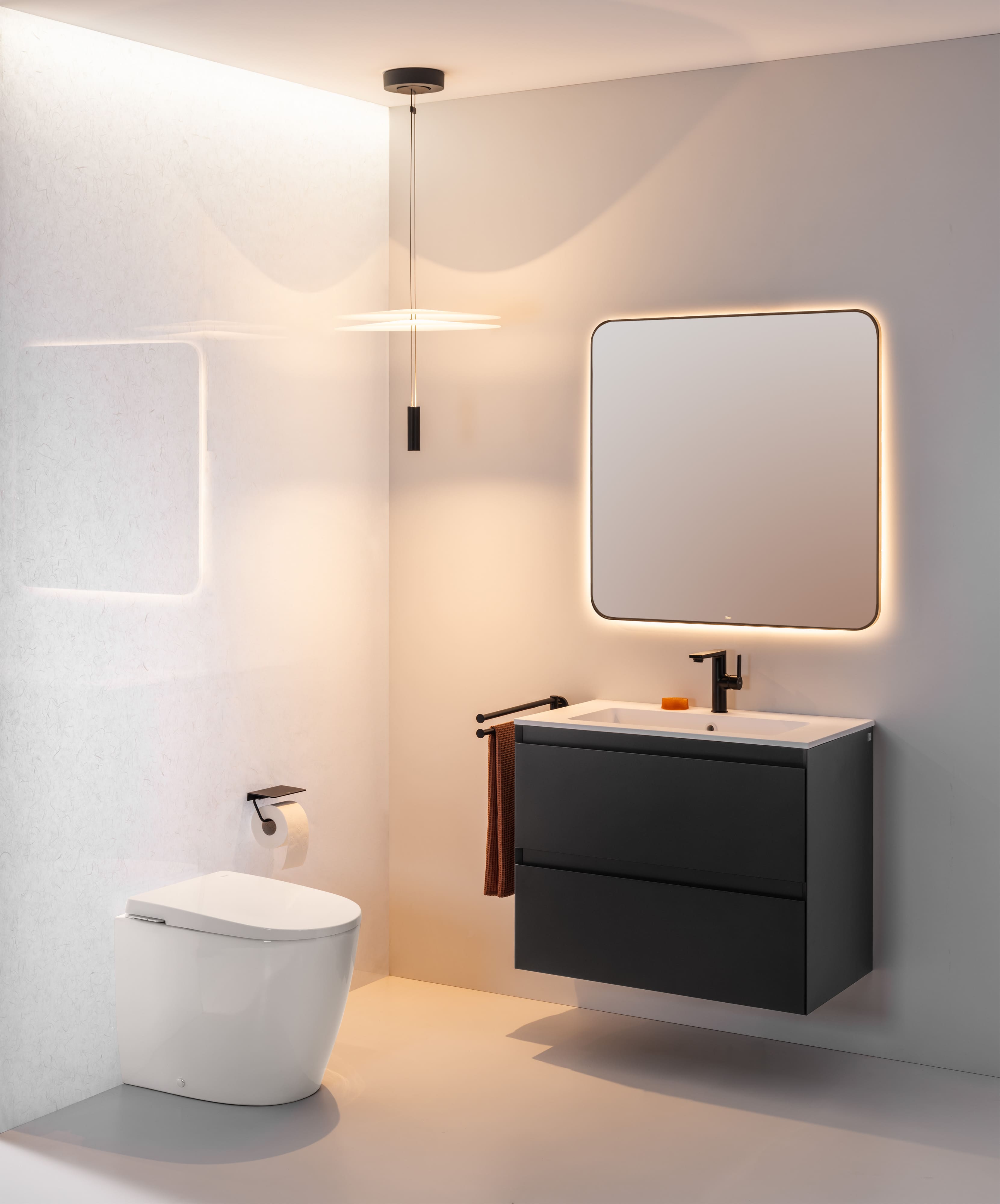 Roca преосмисля банята, като представя авангардна тоалетна с интегрирано казанче, която освобождава ценно пространство. Тези практични функционалности създават продукт, подходящ за всеки и адаптивен към всяко жилище. Стъпка към бъдещето, която опростява ежедневието в банята.