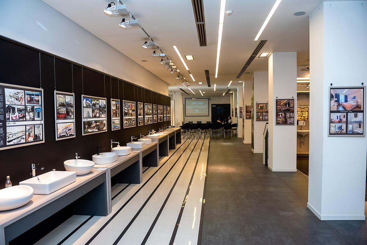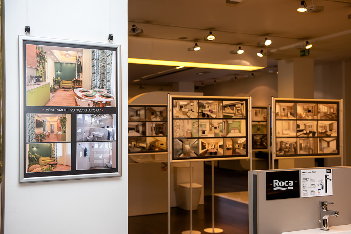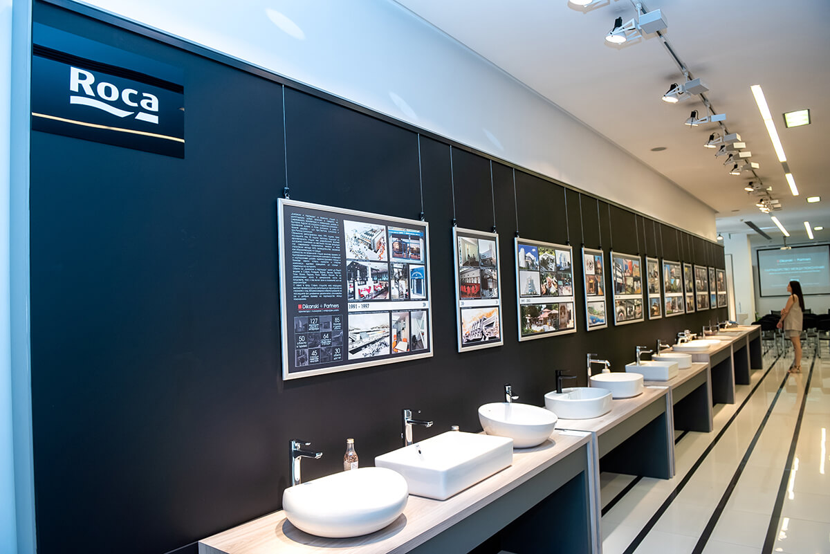 Основен акцент на изложбата е „времевата линия“, която ще преведе посетителите през графично представяне на проектите и обектите, с които са се занимавали и осъществили екипът на архитектурно студио „Дикански и партньори“ през изминалите динамични три десетилетия. „Мога само да продължавам да повтарям, че засвидетелствам огромно уважение към труда на родителите ми за пътя, който са извървяли дотук.“, допълва арх. Диканска. На колоните може да видите част от т.нар. тематични апартаменти, осъществени от архитектурното студио, които пресъздават конкретна атмосфера или тема чрез похватите на интериорния дизайн и заложени продукти на Roca. В допълнение изложбата представя също и визуализации и рисунки на проекти, които са работени през годините, както и на такива, които в момента са в период на реализация.
