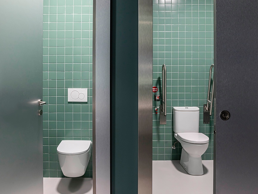 | Продукти на Roca | Окачена тоалетна Ona, окачен умивалник Ona, седалка и капак Ona, вградена структура Duplo WC One, бутон PL2 Dual (One), смесител L20, вграден термостатичен смесител T-500 за душ, комплект душ Stella, закачалка за хавлии Victoria с релса, държач за тоалетна хартия Victoria с капак, държач за тоалетна хартия Victoria без капак. |
