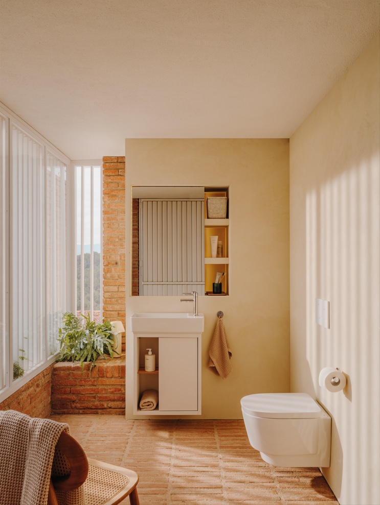 Tura се адаптира идеално към заобикалящата я среда, независимо дали става дума за съвременен апартамент или за селска къща на брега на морето. Нейният непреходен стил, архитектурни форми, съчетани с топли тонове и текстури, разкриват потенциал за вдъхновени пространства за баня, които надхвърлят ежедневието и пленяват въображението.