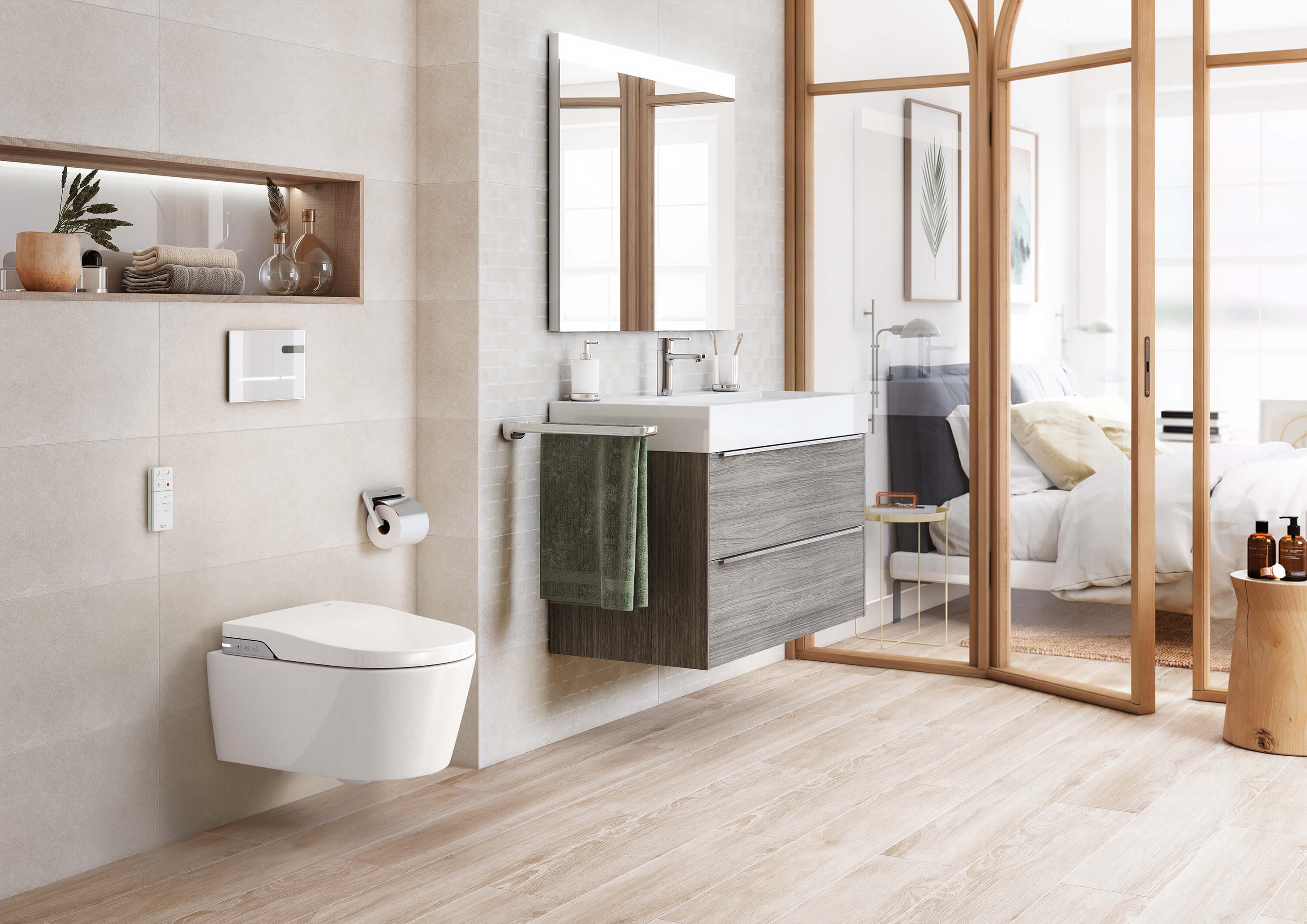 Подобрете личната си рутина за почистване със смарт тоалетните In-Wash® Inspira, които сега включват технологията In-Tank®, чрез която казанчето е интегрирано в самата тоалетна. Без необходимост от структура с вградено казанче, новата In-Wash® Inspira заема по-малко място и предлага по-голяма свобода при проектиране на пространствата в банята.
